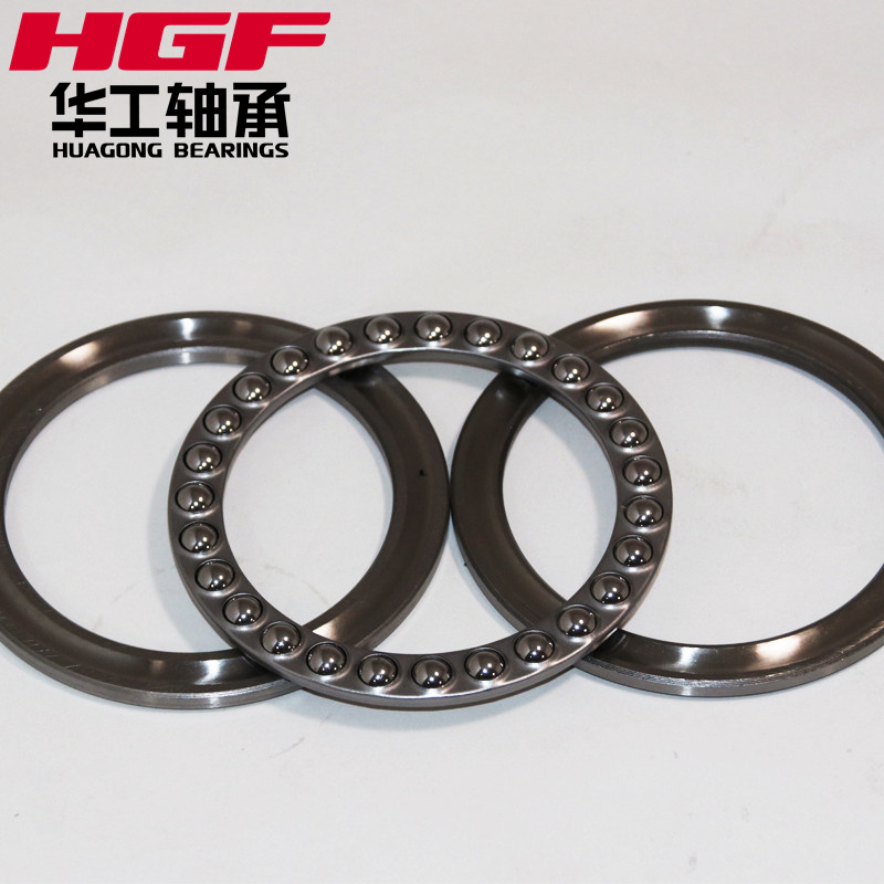 Thrust ball bearings are composed of a row of steel balls (with cage), a shaft washer (tightly fit with the shaft) and a race (there is a gap with the shaft but tightly fit with the bearing seat hole), the steel ball rotates between the shaft washer and the race.